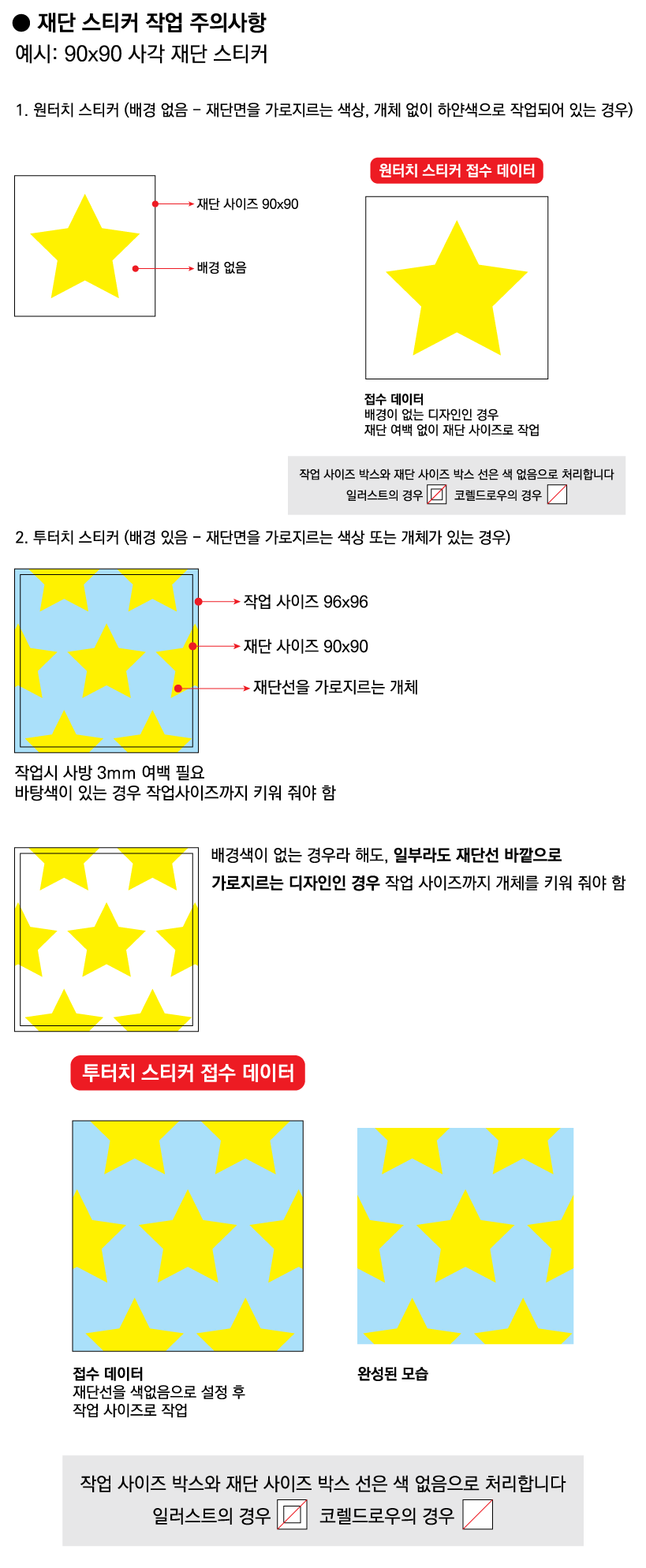 * 60㎜ x 40㎜ 이하 사이즈는 도무송스티커를 이용해주시길 바랍니다.