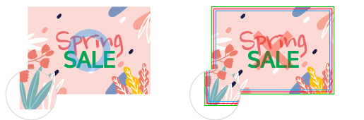 · 합판 시스템 특성상 한 장씩 재단하는 것이 아니라 200~500장의 많은 양을 한 번에 누르면서 재단하므로 안쪽이나 바깥쪽으로 재단 오차가 발생합니다. 테두리가 있거나 액자와 같은 형식의 디자인은 밀림현상으로 인하여 균등한 재단이 이루어지지 않으니 재단 사이즈에서 사방 3~4mm 여유 있는 작업을 하시면 육안상 많이 밀려 보이지 않으시니 작업 시 참고 부탁드립니다.