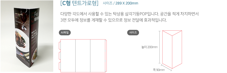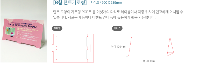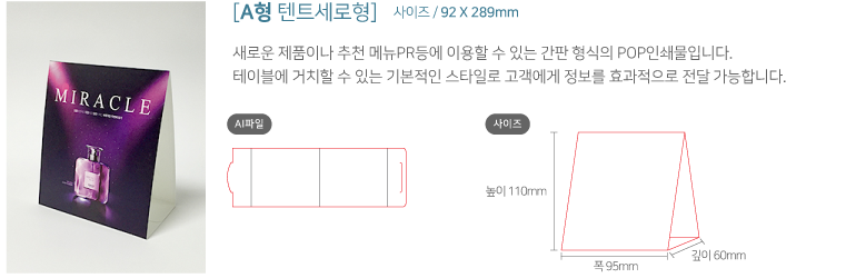 새로운 제품이나 추천 메뉴 PR등에 이용할 수 있는 간판 형식의 POP 인쇄물입니다.
