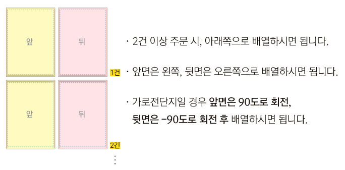 3 세로명함일 경우 앞면은 90도 회전, 뒷면은 -90도 회전 후 배열