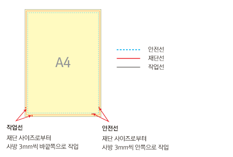 * 안내선을 선 색 없음으로 지정하지 않아 그대로 인쇄된 경우 재작업이 불가능하며