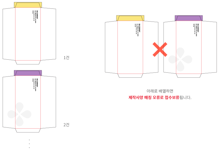 주문서내용의 사이즈와 실제 접수 파일 내용의 사이즈 및 방향도 일치해야합니다.