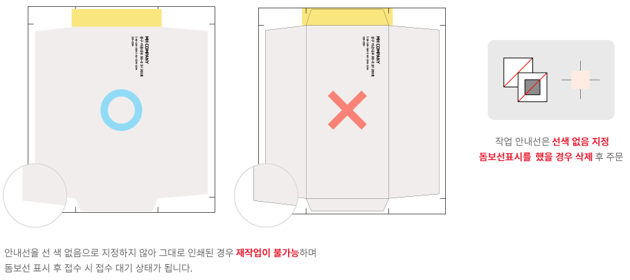· 파일 업로드 시 돔보선은 넣지 마시고 안전선 / 재단선 / 작업선은 삭제가아닌 꼭 안 보이는 선색 없음으로 설정하셔야 합니다.