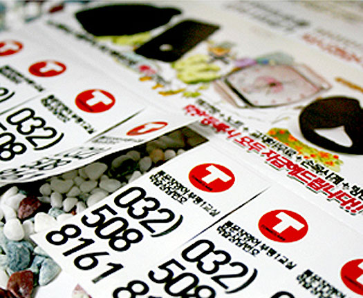 인쇄물 하단에 연락처 등을 기재해 하나씩 떼어갈 수 있도록 칼선을 준 광고물입니다. 한 장으로 다수에게 홍보효과를 누릴 수 있습니다.