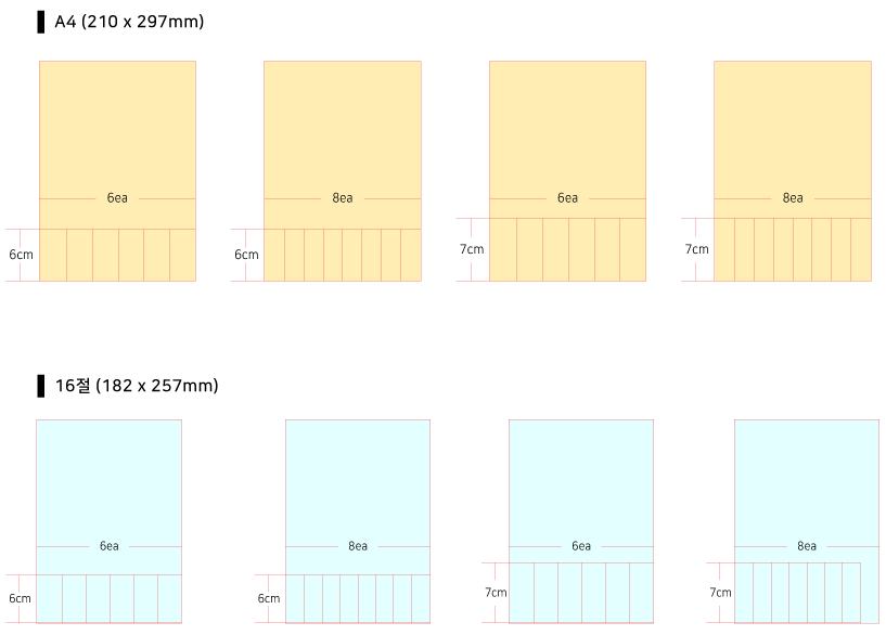 16절 (182 x 257mm) : 6cm-6개 / 6cm-8개 / 7cm- 6개 / 7cm-8개