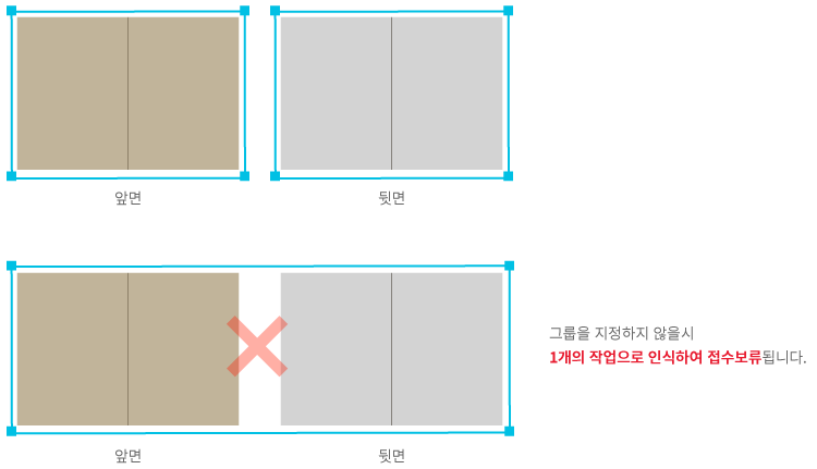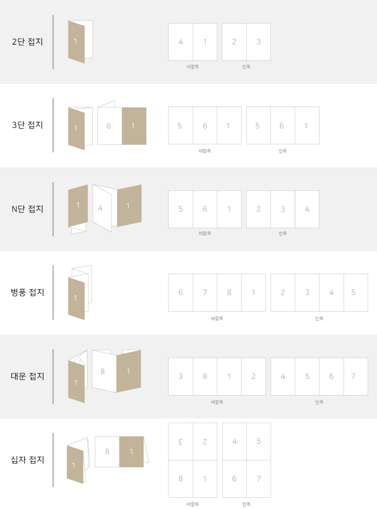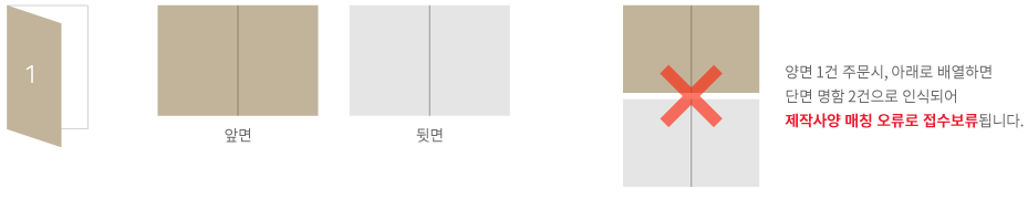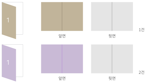 * 디자인하시는 시각에 따라 페이지가 달라질 수 있으므로 디자인 완료 후 바깥 면과 안쪽 면이 맞는지접어서 확인하신 다음 접수해 주시기 바랍니다.