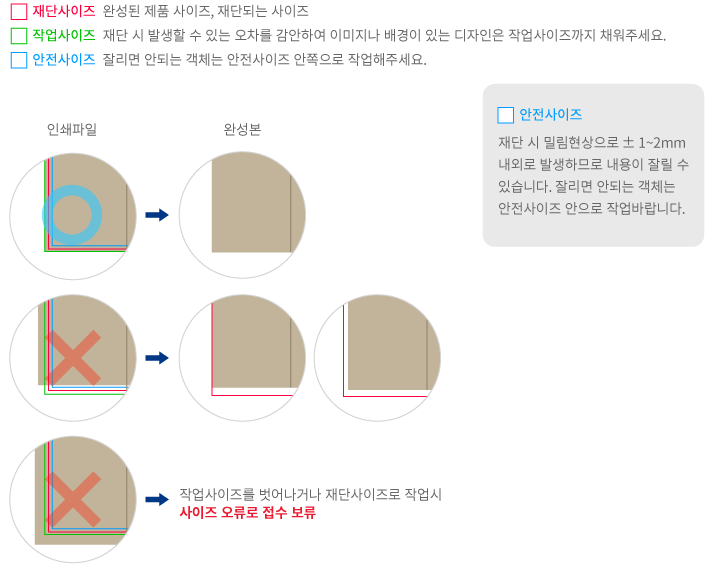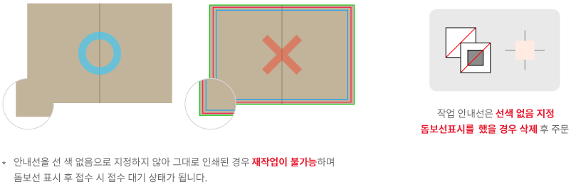 · 파일 업로드 시 돔보선은 넣지 마시고 안전선 / 재단선 / 작업선은 삭제가아닌 꼭 안 보이는 선색 없음으로 설정하셔야 합니다.