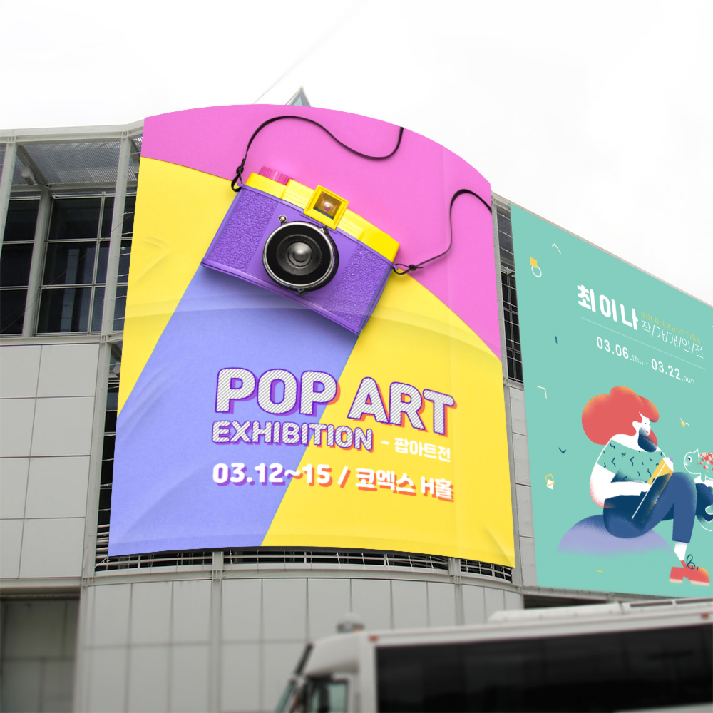 150데니어 백색 광목 원단으로 강하고 잘 찢어지지 않습니다. 저렴하고 튼튼하여 실내외 광고용으로 최적입니다.