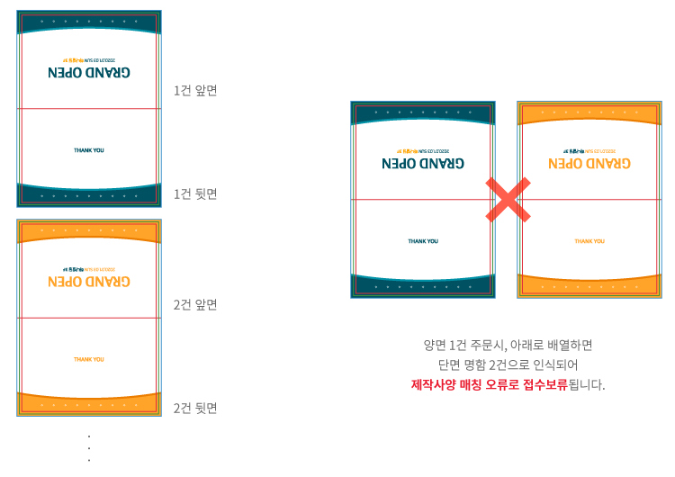 PDF파일을 업로드 할 때는 단면, 양면, 건수에 맞춰서 페이지를 구성해야 합니다.