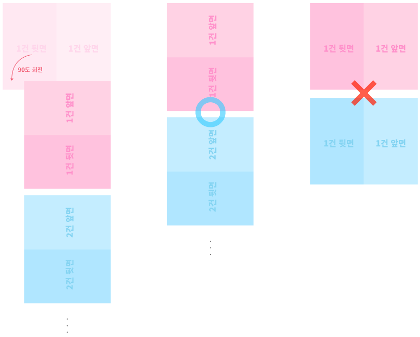 4페이지로 구성 되어야 하고 1건 앞면 > 1건 뒷면 > 2건 앞면 > 2건 뒷면