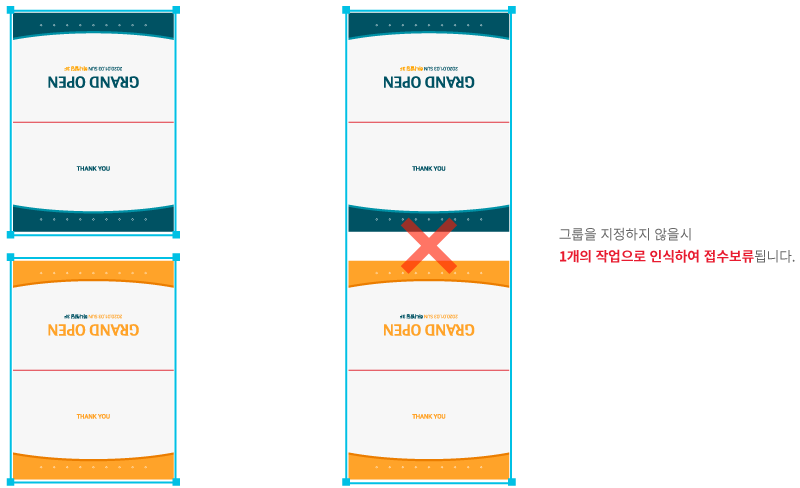 · 글씨나 배경 색상 작업 시, CMYK가 섞인 먹색은 더블톤으로 나올 수 있으니 먹(K100)으로만 작업하셔야 선명하게 인쇄됩니다.