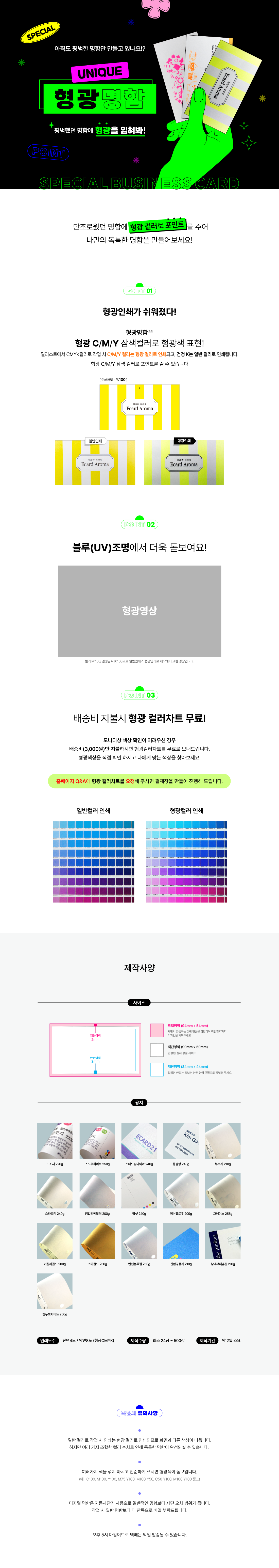 | 형광명함 | 접수완료 후 약2일 소요 (주문량에 따라 변동 될 수 있습니다.) |